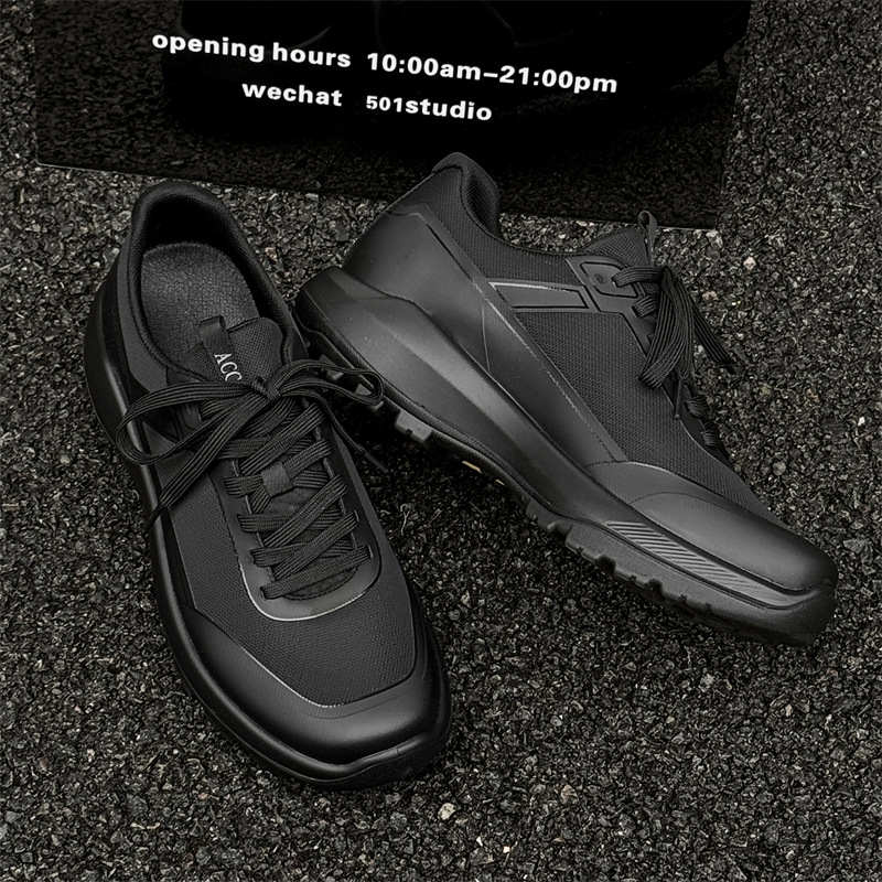 春の紳士靴 2025 新しい通気性フライ織りスポーツシューズソフトソール軽量黒カジュアルシューズ 68802-T