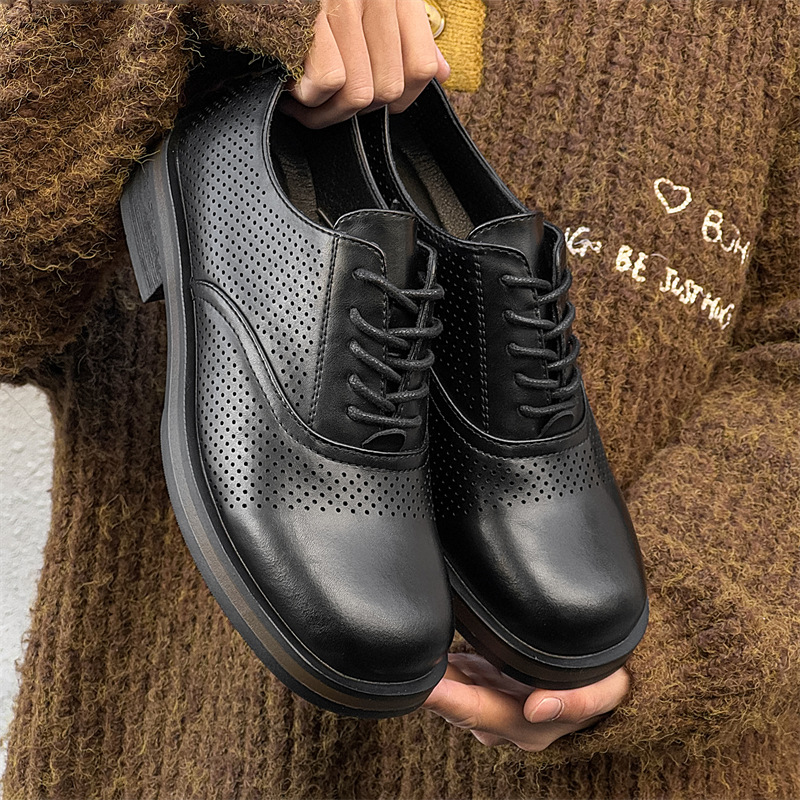 2025 春の新作ダービーシューズ男性と女性のためのニッチレトロミッキーレザーシューズ通勤厚底カップルモデル 55109-J