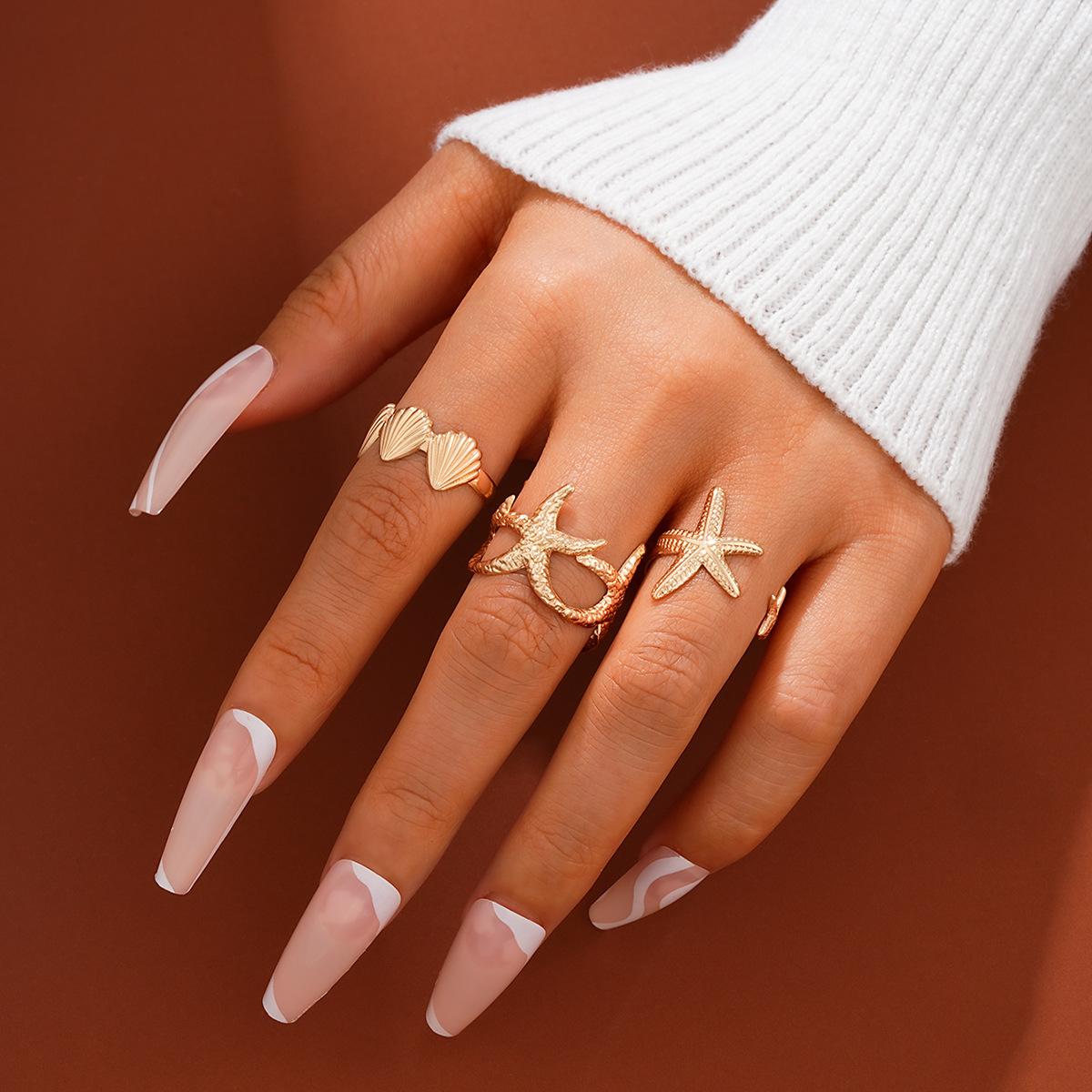 クロスボーダーヨーロッパとアメリカの新しいオーシャンスタイルカジュアルヒトデメタルオープンリングビーチ休暇レディースハンドジュエリー3点セット