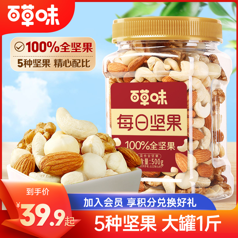 【5種類のナッツ】百草味毎日純ナッツ500g缶ミックス