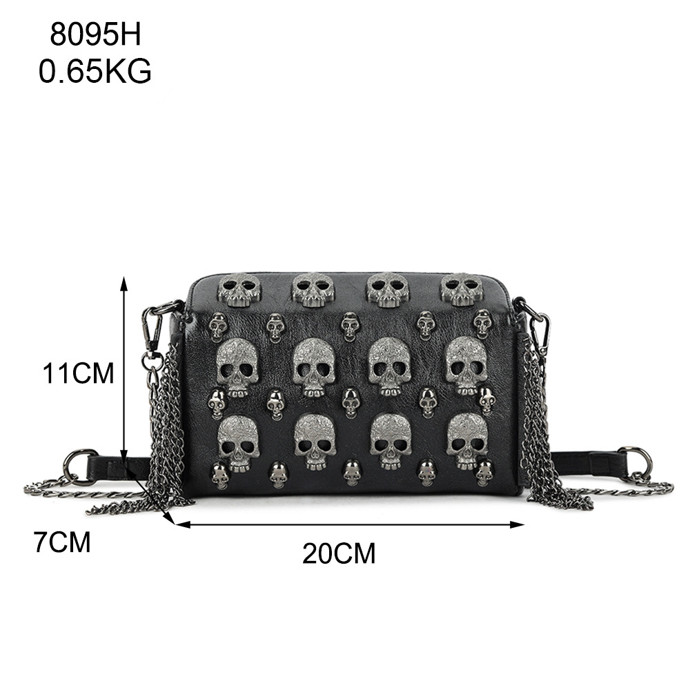 2025 新しいヨーロッパとアメリカのファッションヘビーデューティパンクスタイルオートバイリベットスカルバッグパーソナライズされたトレンディなクールなシングルショルダークロスボディバッグ