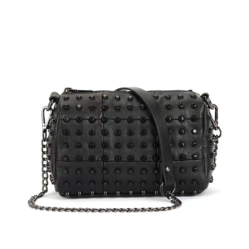 クロスボーダーヨーロッパとアメリカのファッション 2025 新しいパンクスタイルのチェーンバッグソフトレザーリベットバッグパーソナライズされたトレンディでクールなシングルショルダークロスボディバッグ