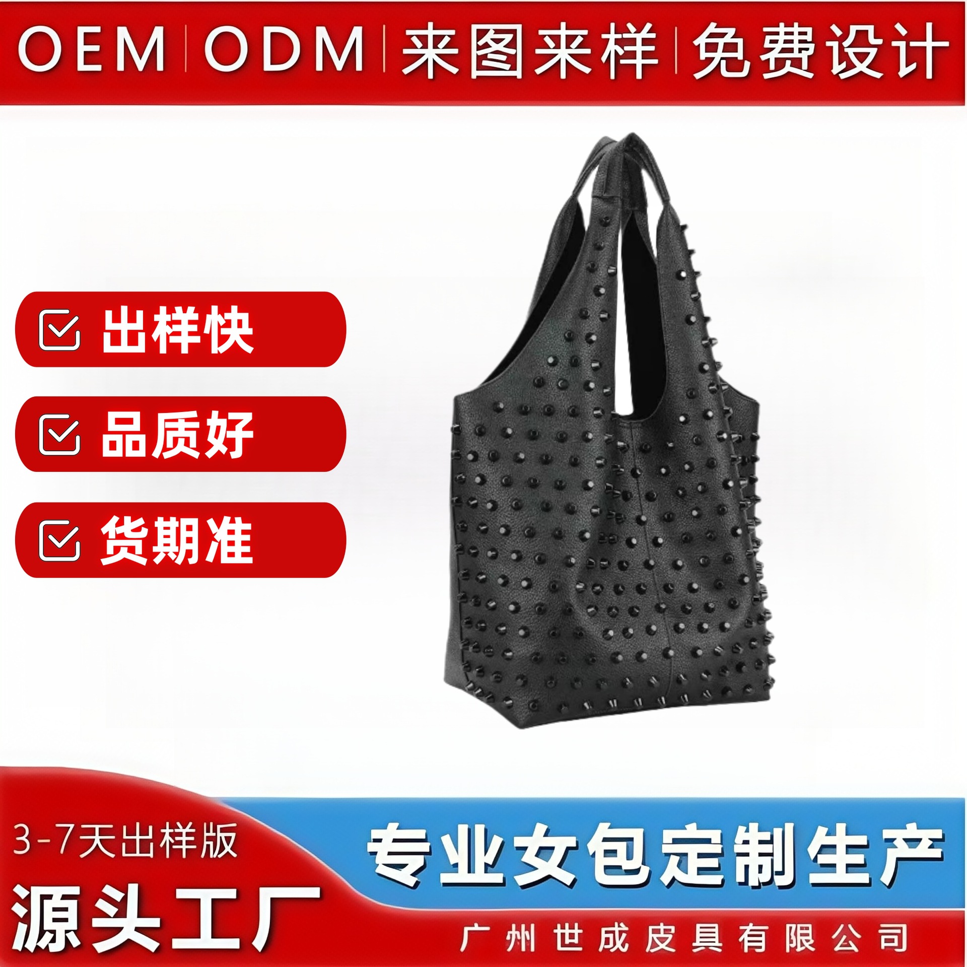 [カスタマイズ] クロスボーダーホットセールトレンディでクールなパーソナライズされたリベット大容量 PU ゴミ袋バケットバッグトートバッグライトカスタマイズ