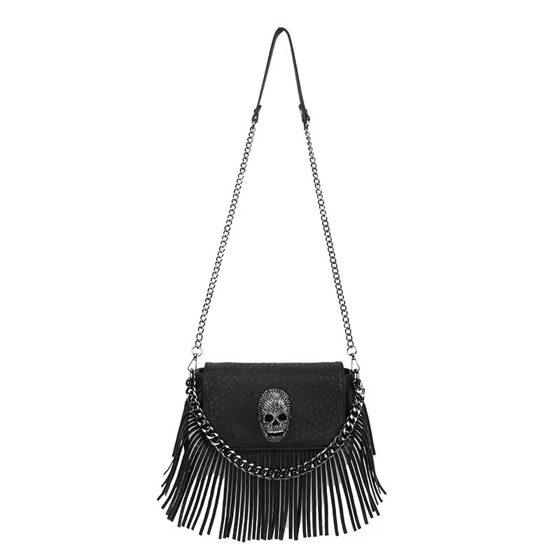 クロスボーダー新しいスカル装飾バッグ 2025 夏の新しいファッションパーソナライズされたタッセルショルダーバッグレトロクロスボディバッグ