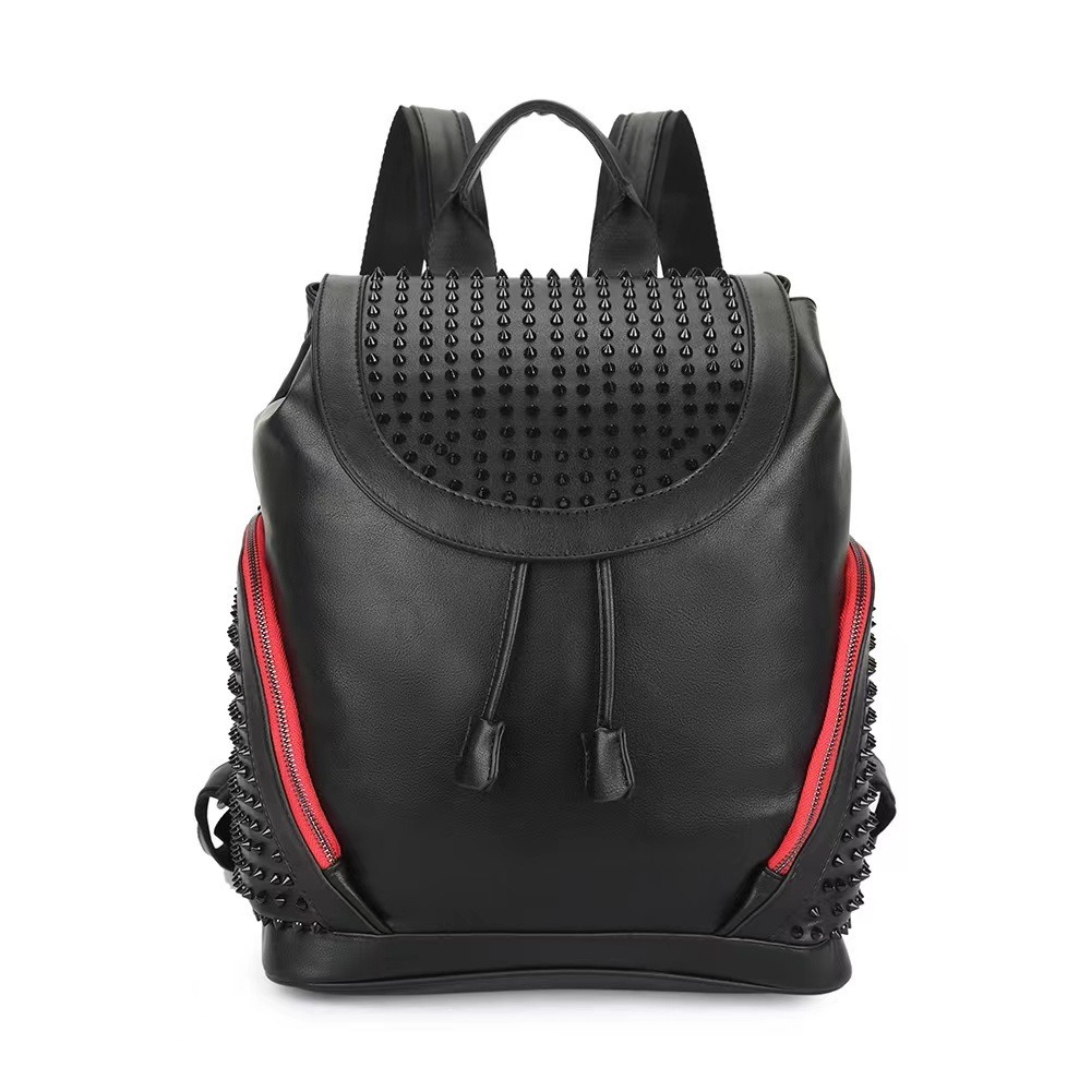 2025 新しいクロスボーダー大容量バックパック外国貿易トレンディなクールな黒と赤のコントラストリベットバッグメーカー卸売在庫