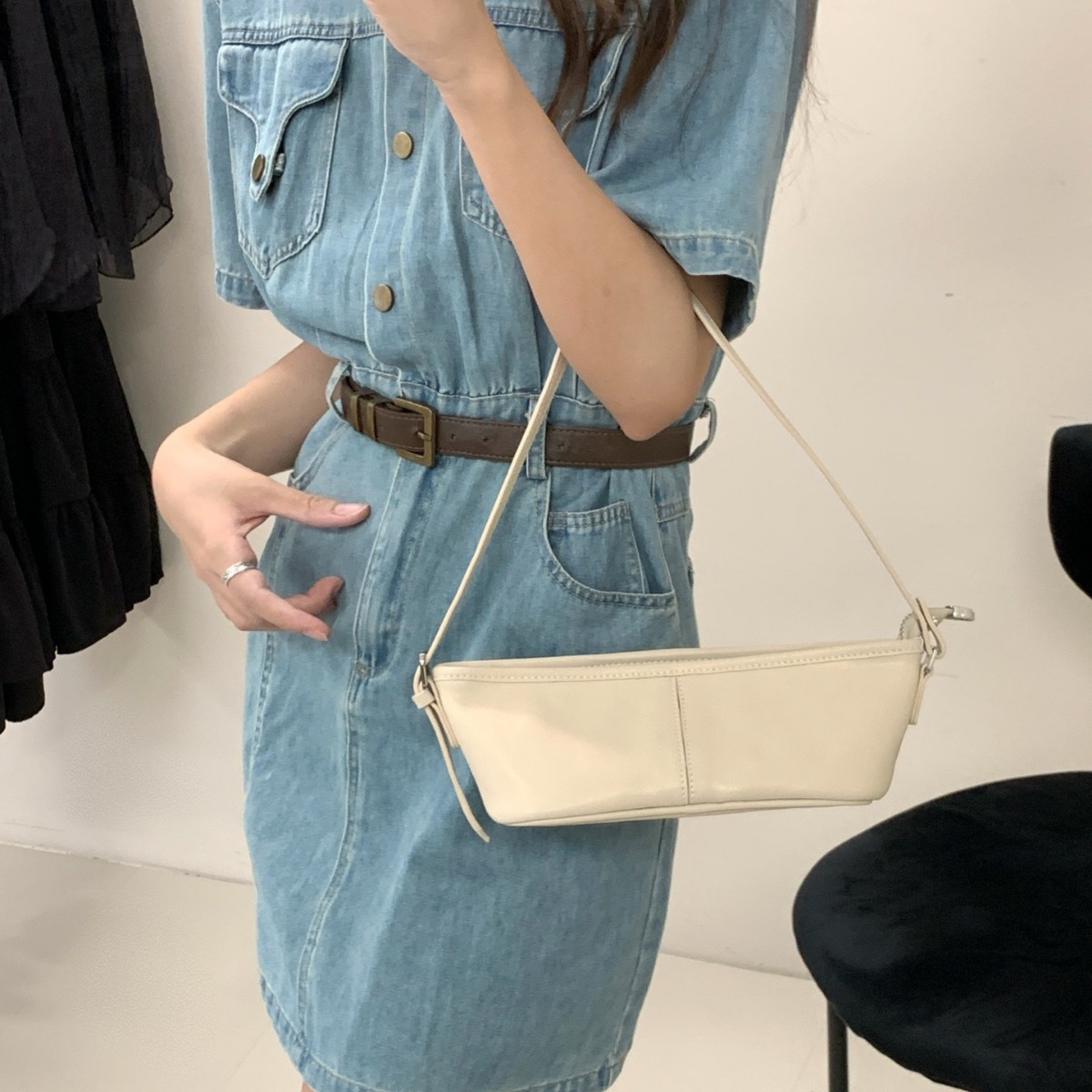 国境を越えた人気のパーソナライズされたロングバゲットバッグ 2025 夏の新しいスタイルのリベットクールでハンサムなソリッドカラーのポータブルショルダークロスボディバッグ