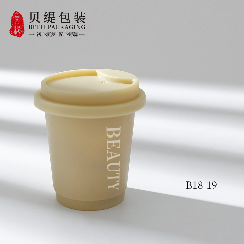 ベティの新しい子供はプラスチックカップの漢方薬の粉剤を飲んでコップの益生菌の粉の健康食品の飲み物のコップを入れます。