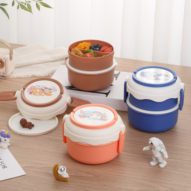 INS Amazon ラウンド二層弁当箱学生圧縮積み重ね弁当箱電子レンジ弁当箱弁当箱