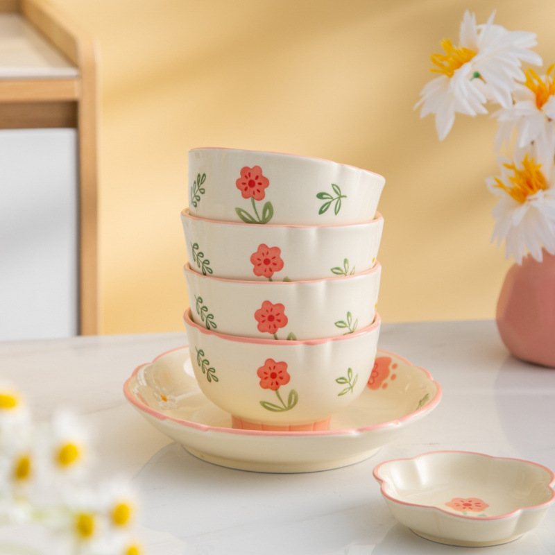 インピンクのかわいいヌードルボウル、家庭用インスタントラーメンボウル、ライスボウル、両耳スープボウル、見栄えの良いセラミックボウル、見栄えの良い