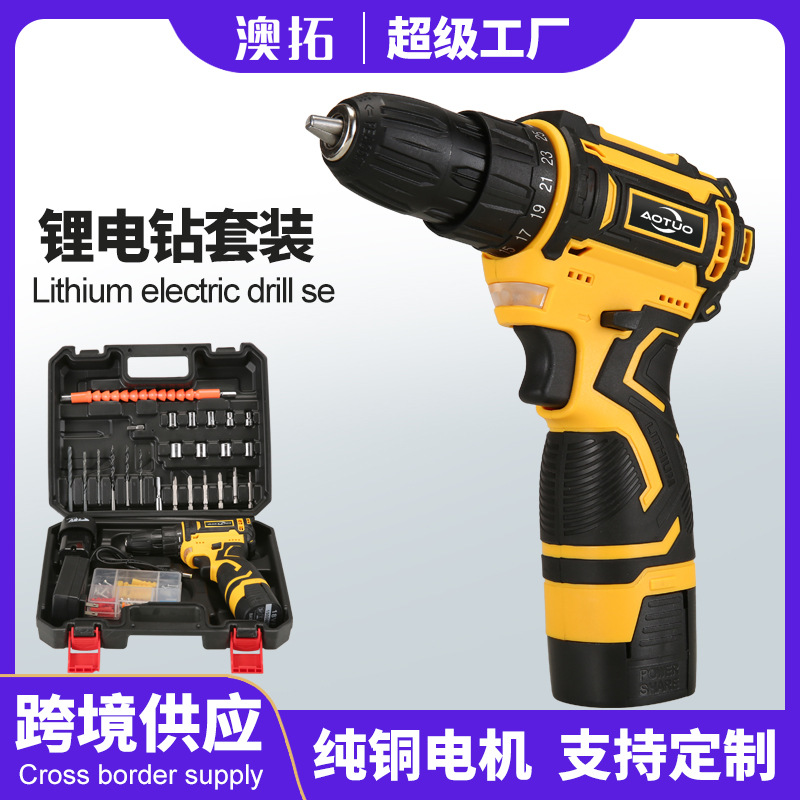 クロスボーダー新型多機能充電ドリルリチウム電気ドリル12V電動ドライバー電気ドリルセット卸売り