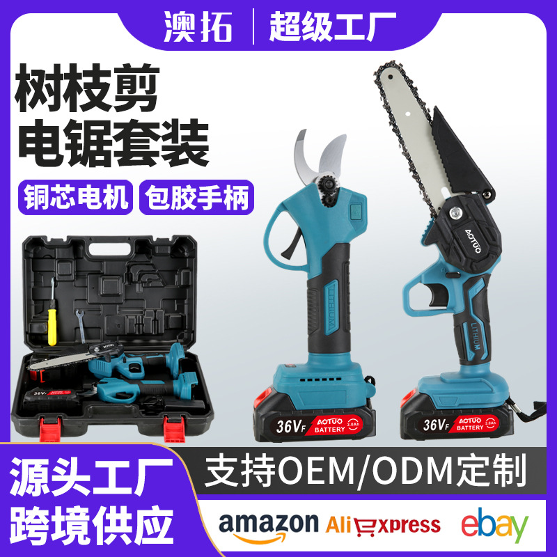 リチウム電気剪定2点セットリチウム電気樹枝剪定リチウム電気チェーンソーはさみ鋸2点セット