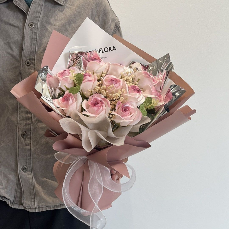 ローズブーケ、永遠のカスミソウ、本物の花、親友、ボーイフレンドへの誕生日プレゼント、中国のバレンタインデー、工場直販