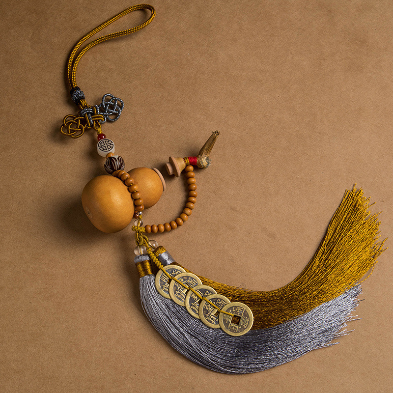 車のペンダント、天然開口ひょうたん、五帝のお金、車のペンダント、バックミラー、男性と女性が出入りして安全に幸運をもたらす