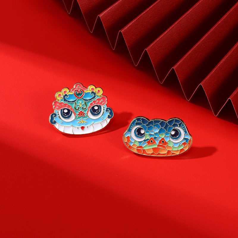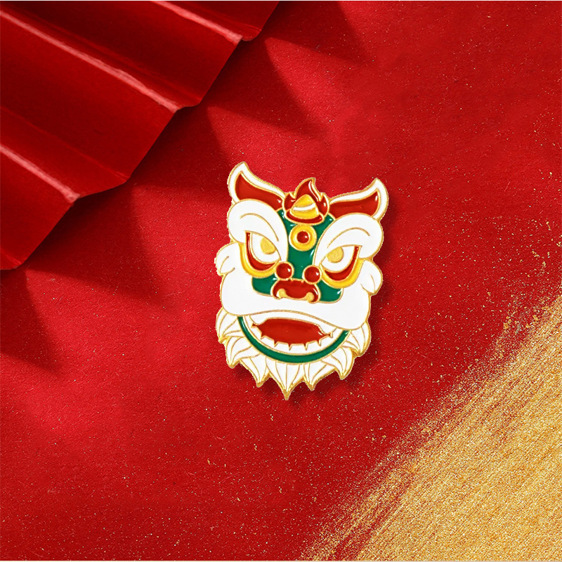 中国風漫画ライオンの頭バッジ国潮服装アクセサリーブローチ百合舞獅子男女かばん装飾
