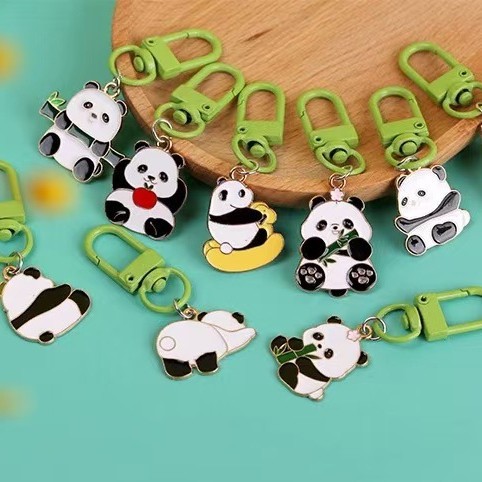 クリエイティブパンダ金属キーホルダーかわいいバッグ装飾ストラップ旅行パンダ文創小プレゼント