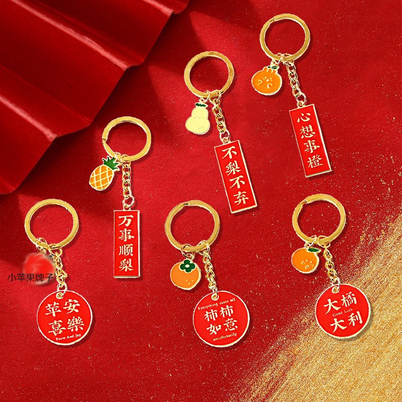 幸運激励志文字果物キーホルダーストラップ男女個性かばん装飾品insカップル祝日プレゼント