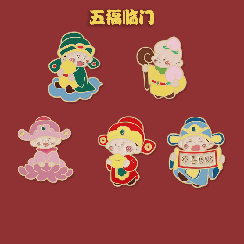 アニメ中国風五福バッジお祝い財神福禄寿新年服装ブローチ文創幸運バッグ装飾