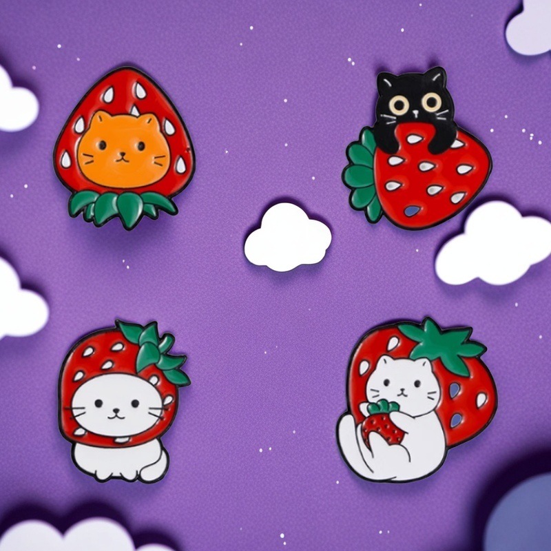 アニメいちご猫バッジかわいい風白猫服飾りブローチ果物黒猫かばん飾りプレゼント