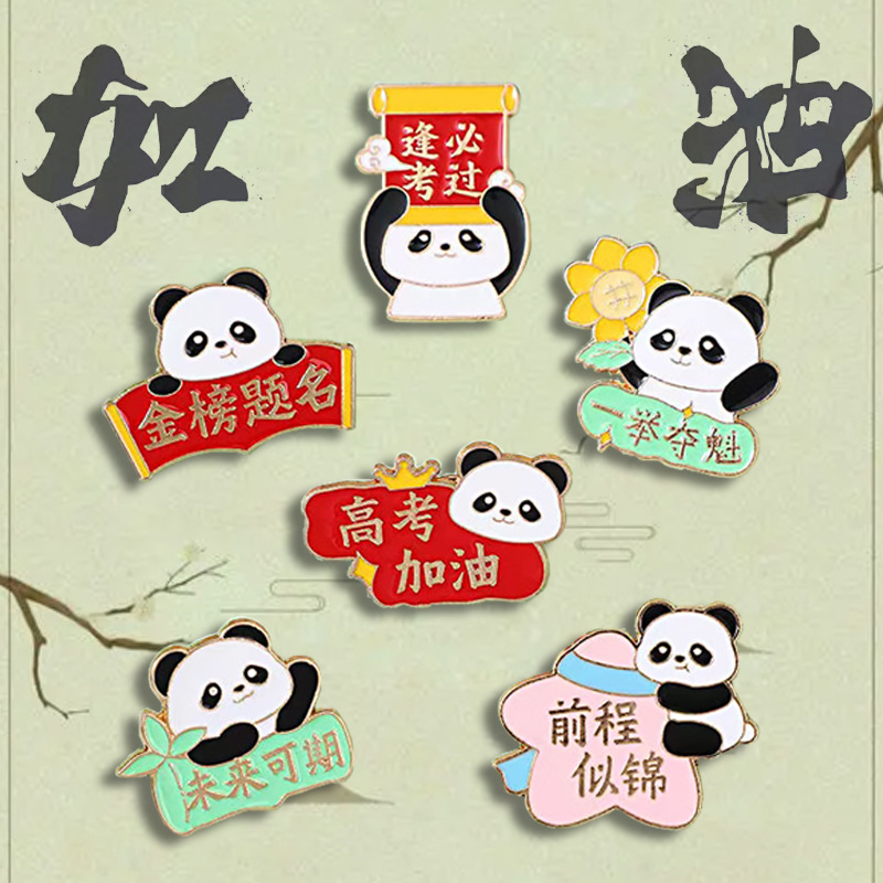 国風激励志文字パンダ金属バッジ学生賞品ブローチ大学入試卒業シーズンのかばん装飾プレゼント