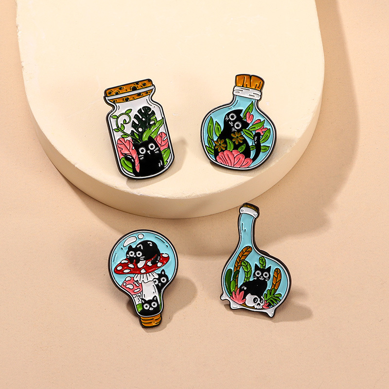 漫画ボトル黒猫かわいいバッジ百合植物黒猫小清新服装アクセサリーブローチバッグ装飾品