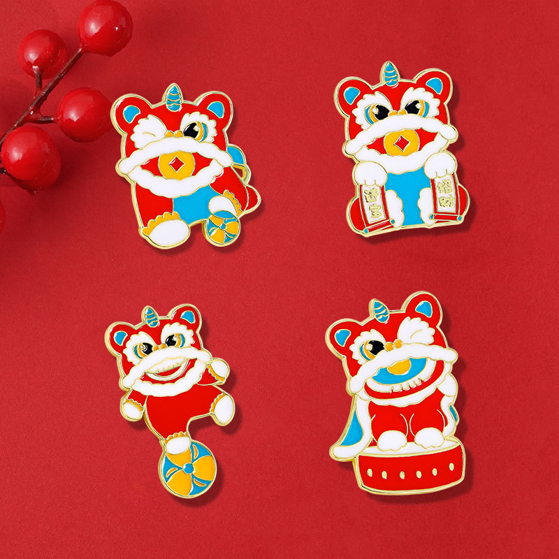 かわいいライオンバッジ新年漫画ブローチ旧正月お祝い目覚めライオンアクセサリー中国風バックパック装飾品バッジ