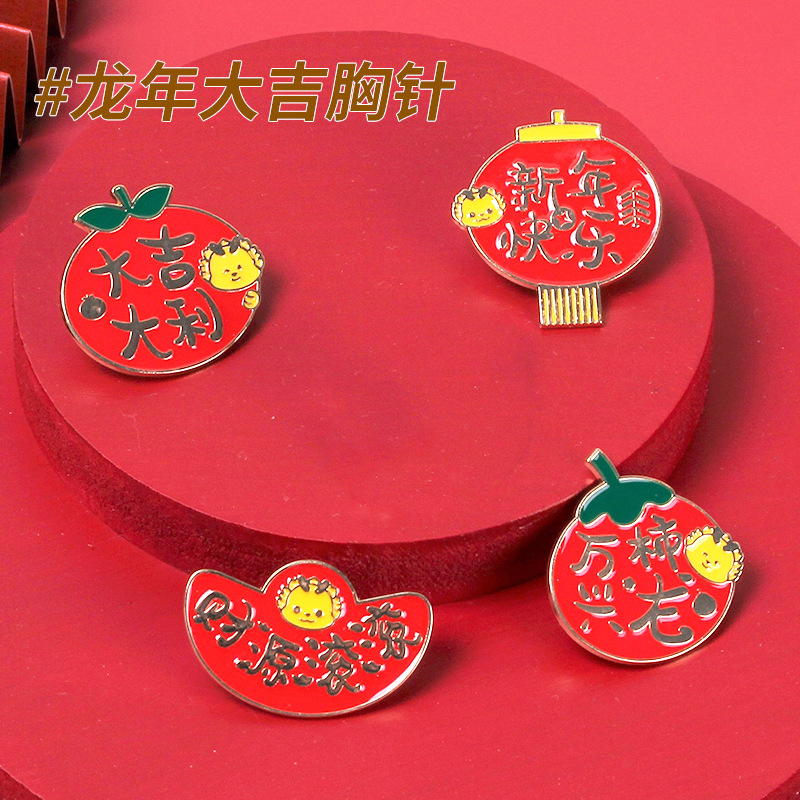 2024竜年吉祥バッジ大吉イタリア新年ブローチ文字創意衣装アクセサリーピン留め中国風