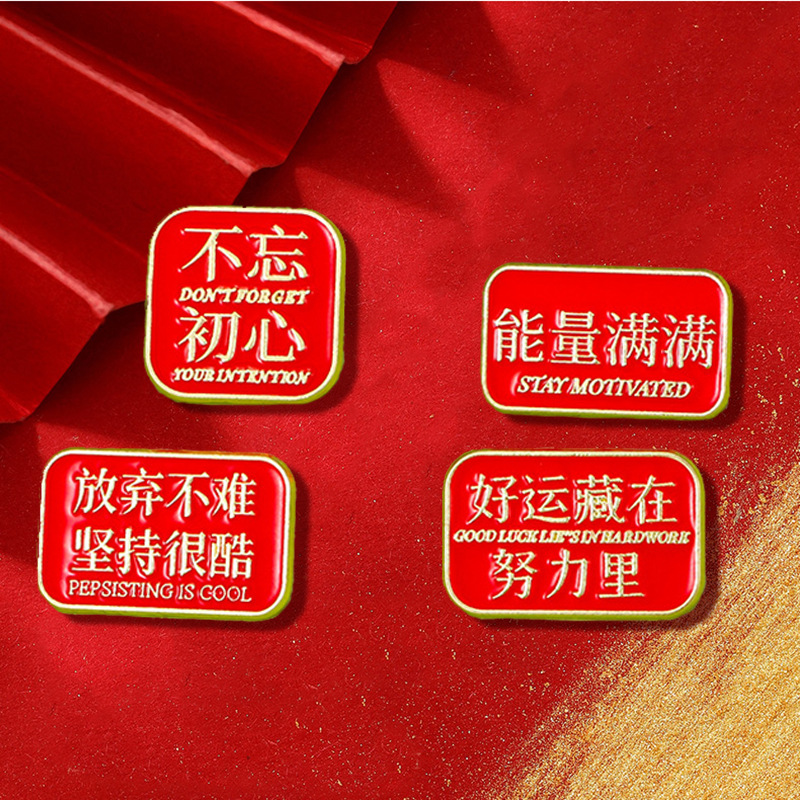 初心を忘れないブローチ、赤いインスピレーションを与えるバッジ、幸運と祝福の金属製バッグピン、アクセサリー、新学期ギフトバッジ