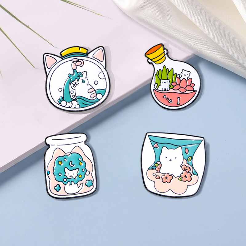 瓶の猫のバッジの漫画の白い猫のブローチの個性のリュックサックの装飾品の服装は金属のピンを飾ってクロスボーダーを掛けます。