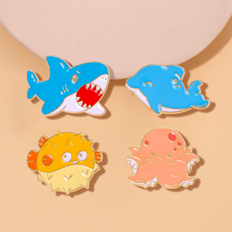 漫画海洋サメクジラバッジかわいいカップルブローチ装飾品衣装アクセサリー金属ピン留めバッジ