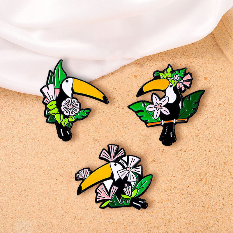 漫画のオウムのブローチの大きい口の鳥の百合のバッジのかわいい大衆の胸のバッジの包みは金属のピンの装飾品を掛けます。