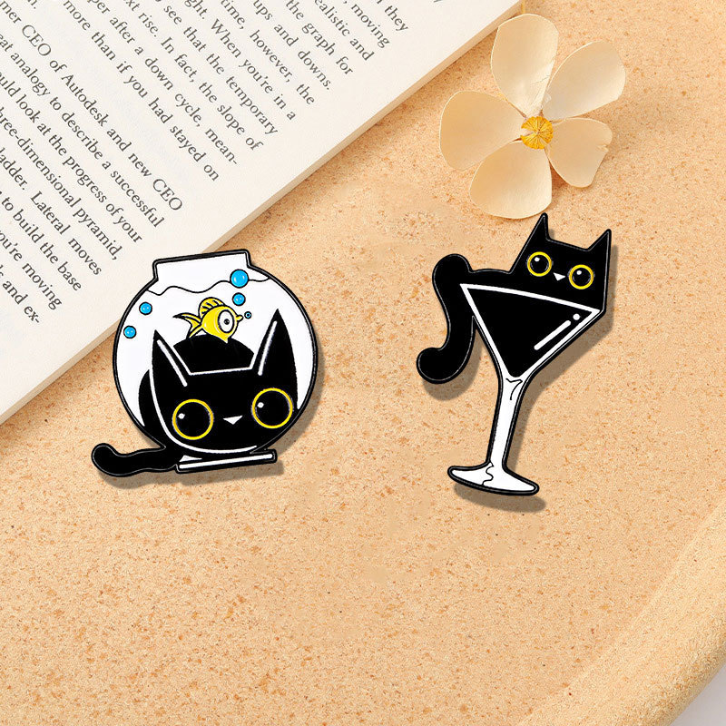 漫画の個性的な黒猫のブローチの子猫のかわいい猫の金属のバッジの包みはピンのアニメの日系のバッジを飾ります。