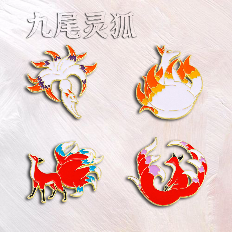 九尾狐バッジ山海経神獣ブローチ文化創意個性胸章リュックサック装飾品カップルアクセサリー