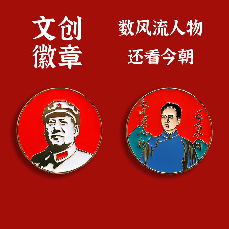 偉人像記念メタルブローチ、緋色のリーダー像バッジ、クラシックな感動を表現した緋色のリーダー像バッジ