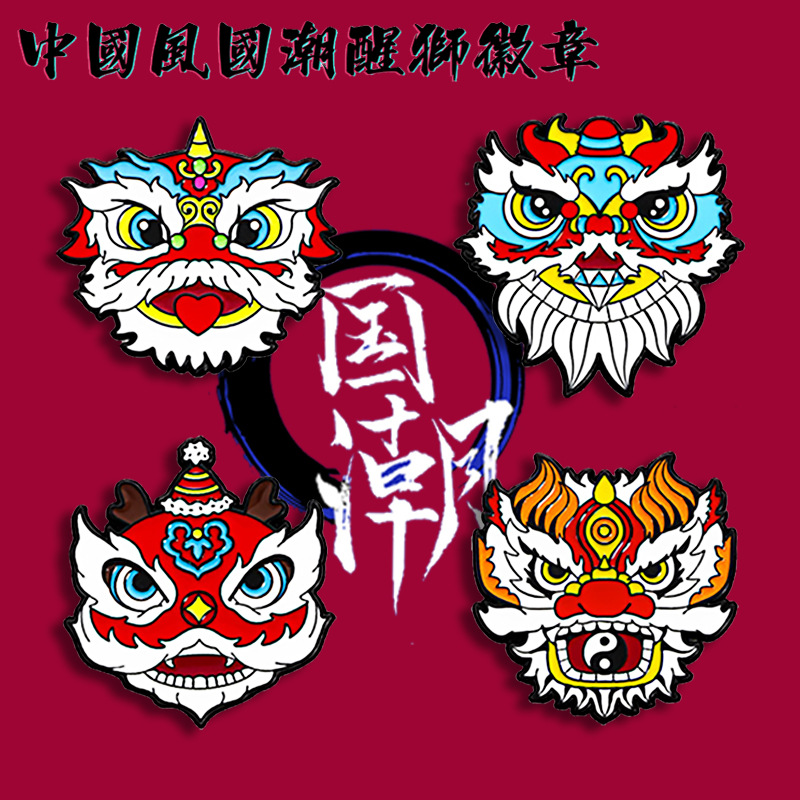 漫画かわいい目を覚ますライオンの造形バッジ中国風百合服装アクセサリーブローチ国潮個性バッグ装飾品