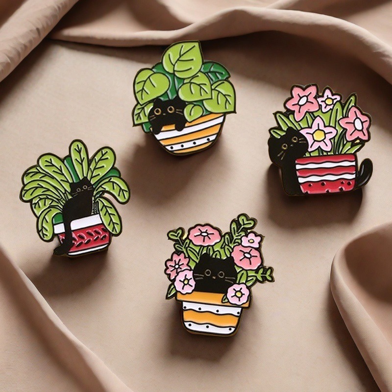 漫画黒猫金属バッジpinかわいい植物猫服アクセサリーブローチカップル学生かばん装飾