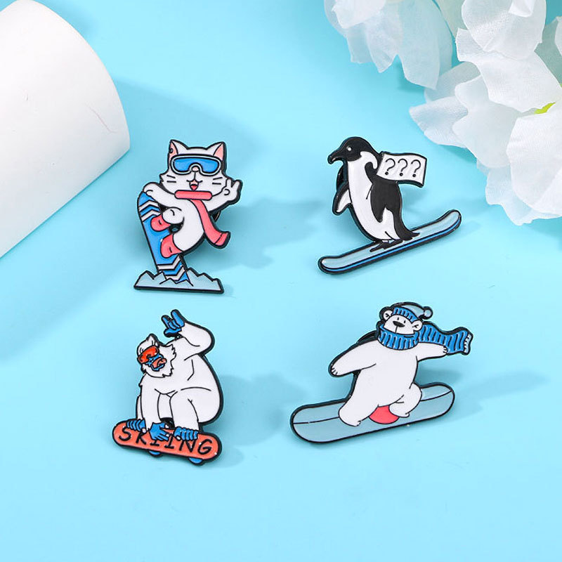 漫画スキーかわいいバッジホッキョクグマペンギン小動物服装アクセサリーブローチ男女学生かばん装飾