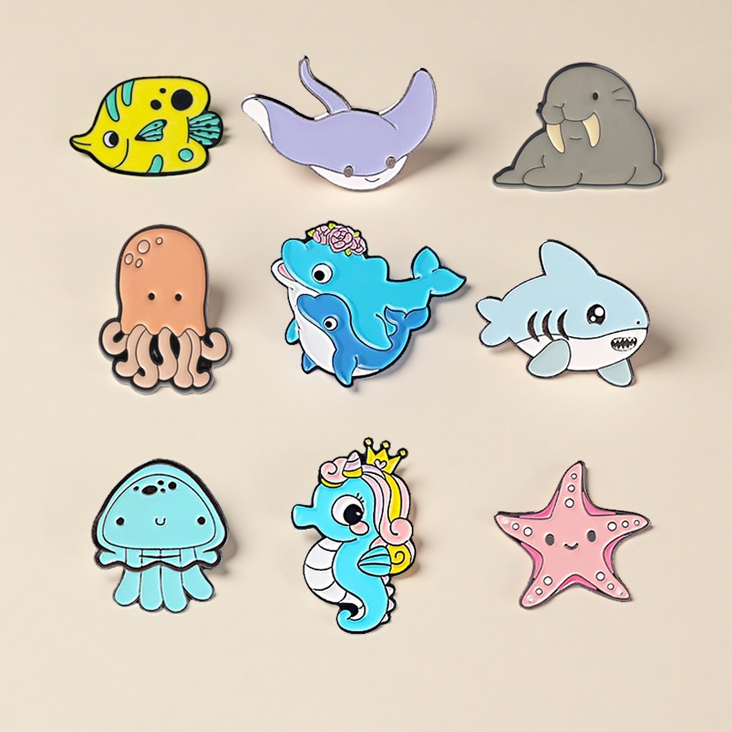 漫画海洋動物バッジイルカ海馬サメ服装アクセサリーブローチ海星クラゲかばん装飾プレゼント