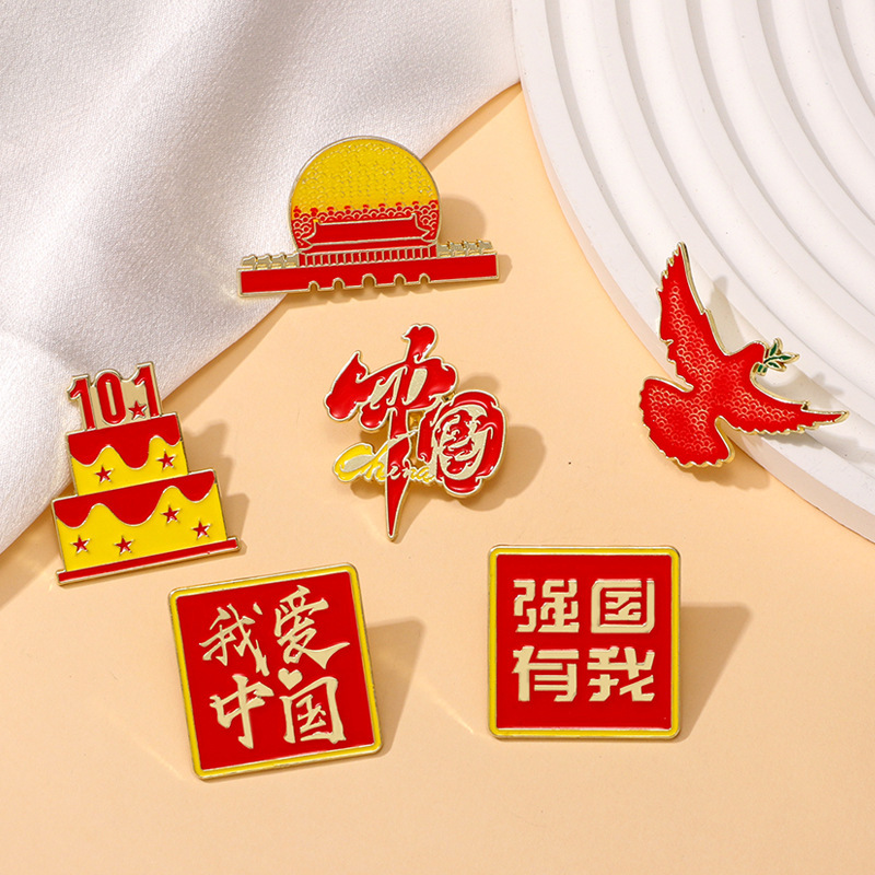 国慶節記念品バッジ中国風愛国文字シリーズ勲章私は中国金属ブローチアクセサリーを愛しています