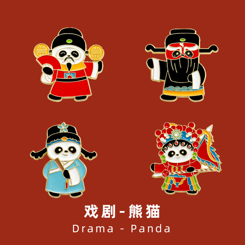 漫画かわいいパンダバッジ京劇生旦浄醜い演劇衣装ブローチ国潮中国風かばん装飾品