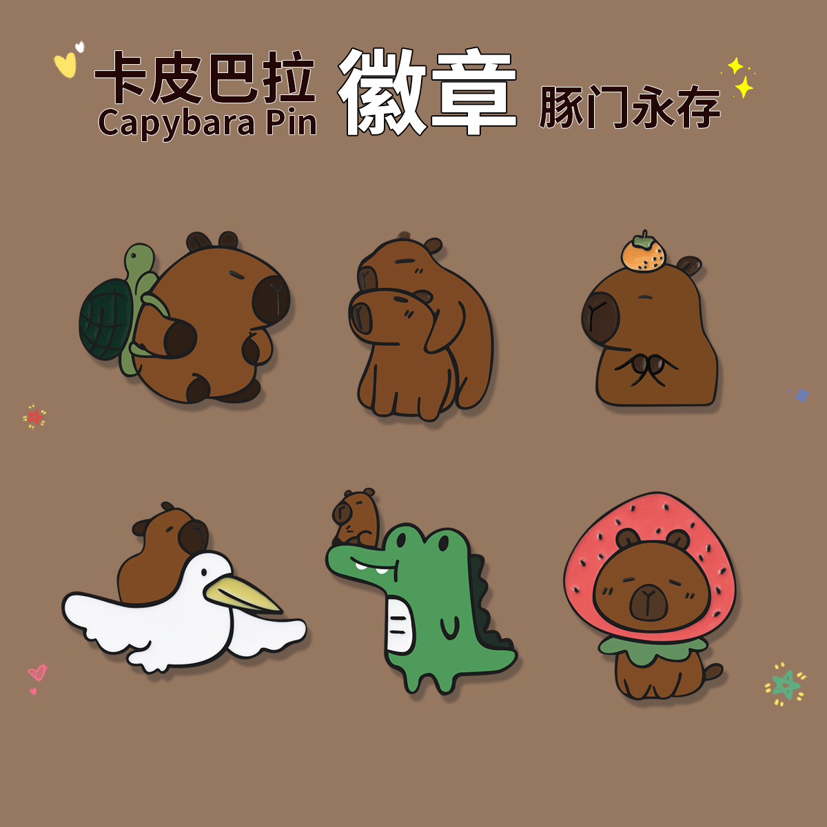 カピバラバッジ漫画かわいいカピバラブローチ金属ピン留めバッジ装飾品個性リュックサック装飾品