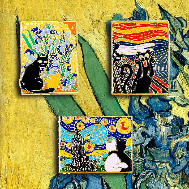 ゴッホの名画バッジは猫のブローチのリュックサックの装飾品を責めます。