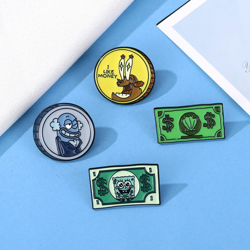 漫画のスポンジの赤ちゃんのかわいいバッジpinビッチバーグのドルのコインの服装のブローチの学生のかばんの装飾の贈り物