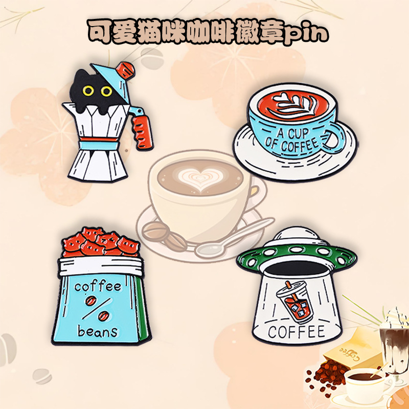 個性的なコーヒーの猫のバッジpinはかわいいです。