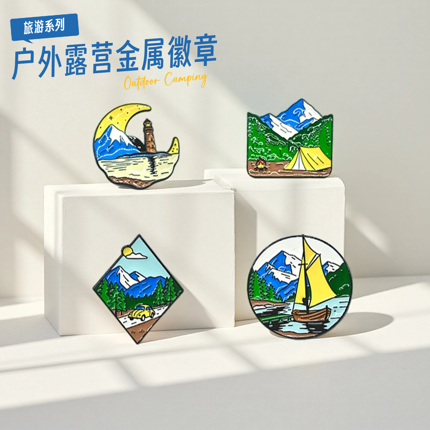 売れ筋アウトドアキャンプトラベルシリーズメタルバッジピンテントセーリングブローチ多用途衣類バッグアクセサリー