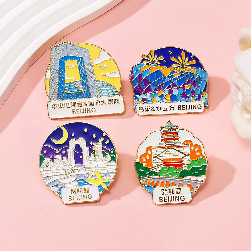 文創観光北京スポット記念ブローチ都市風景名勝円明園鳥の巣水立方金属バッジ