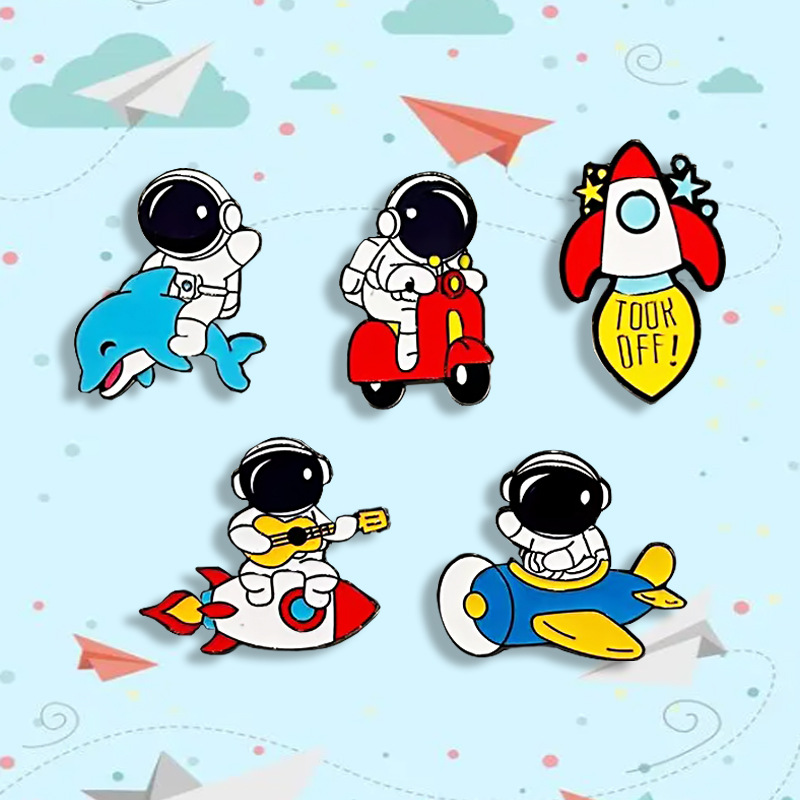 漫画は宇宙飛行士バッジ宇宙飛行士がロケットに座っているかわいい服装のブローチ男女のかばんの装飾品を責めている