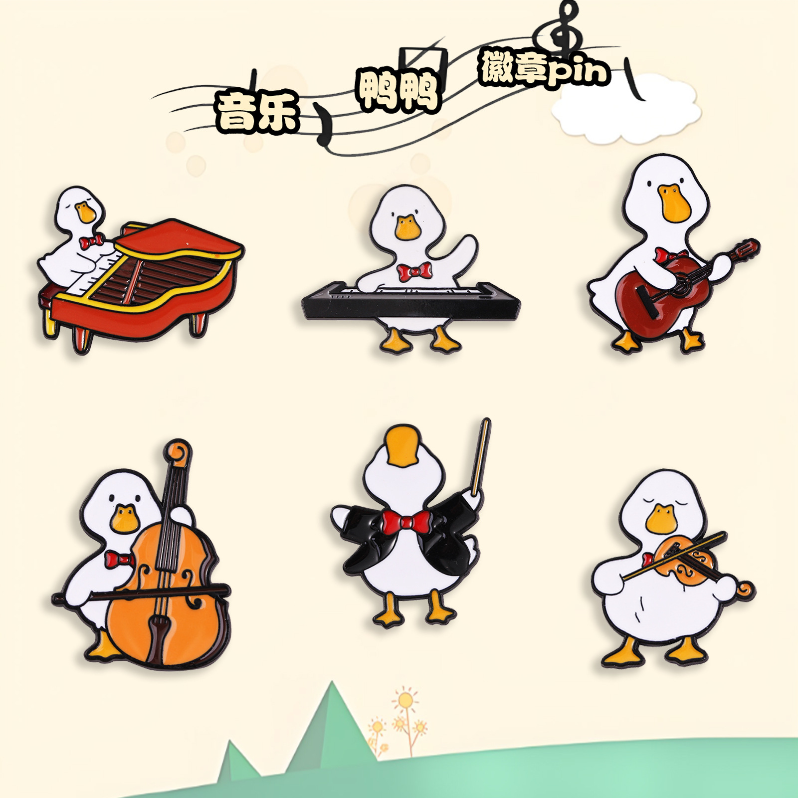 漫画音楽アヒルバッジpinピアノチェロギターアヒルアヒル服アクセサリーブローチ学生カバンアクセサリー