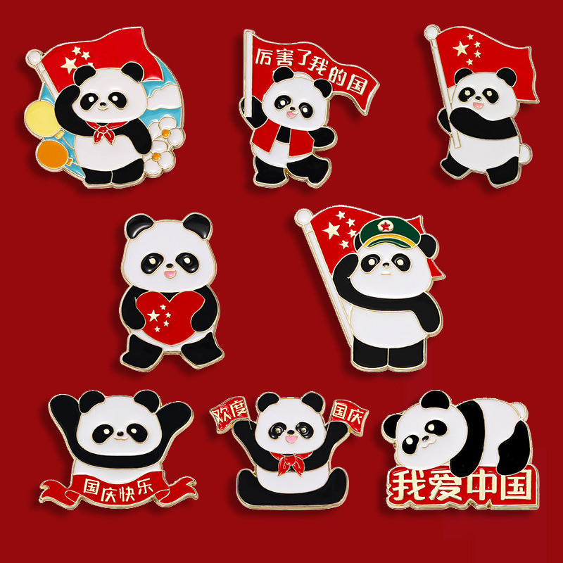 国慶節かわいい漫画パンダブローチ五星紅旗私は中国敬礼金属バッジバックパック装飾品を愛しています
