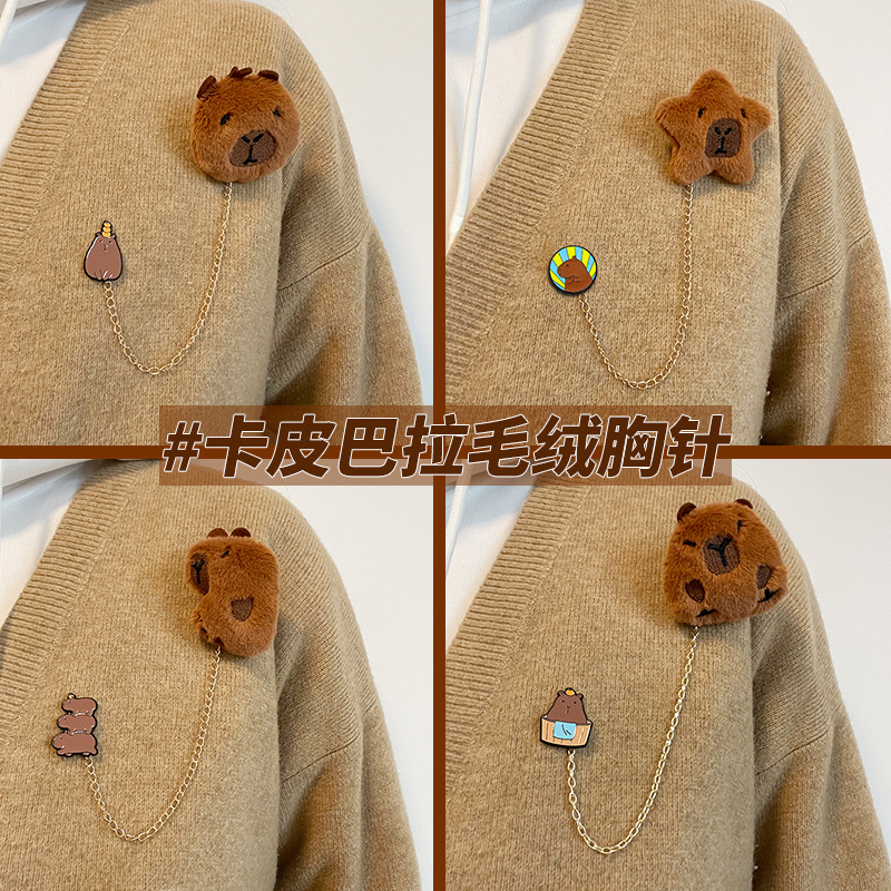 漫画ぬいぐるみカピバラブローチかわいい個性カピバラバッジバレンタインギフトカップルピン飾り