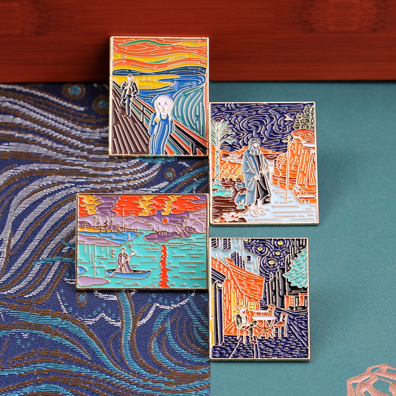 ゴッホ油絵金属バッジpin日の出イメージアート名画衣装ブローチ美术学生かばん装饰